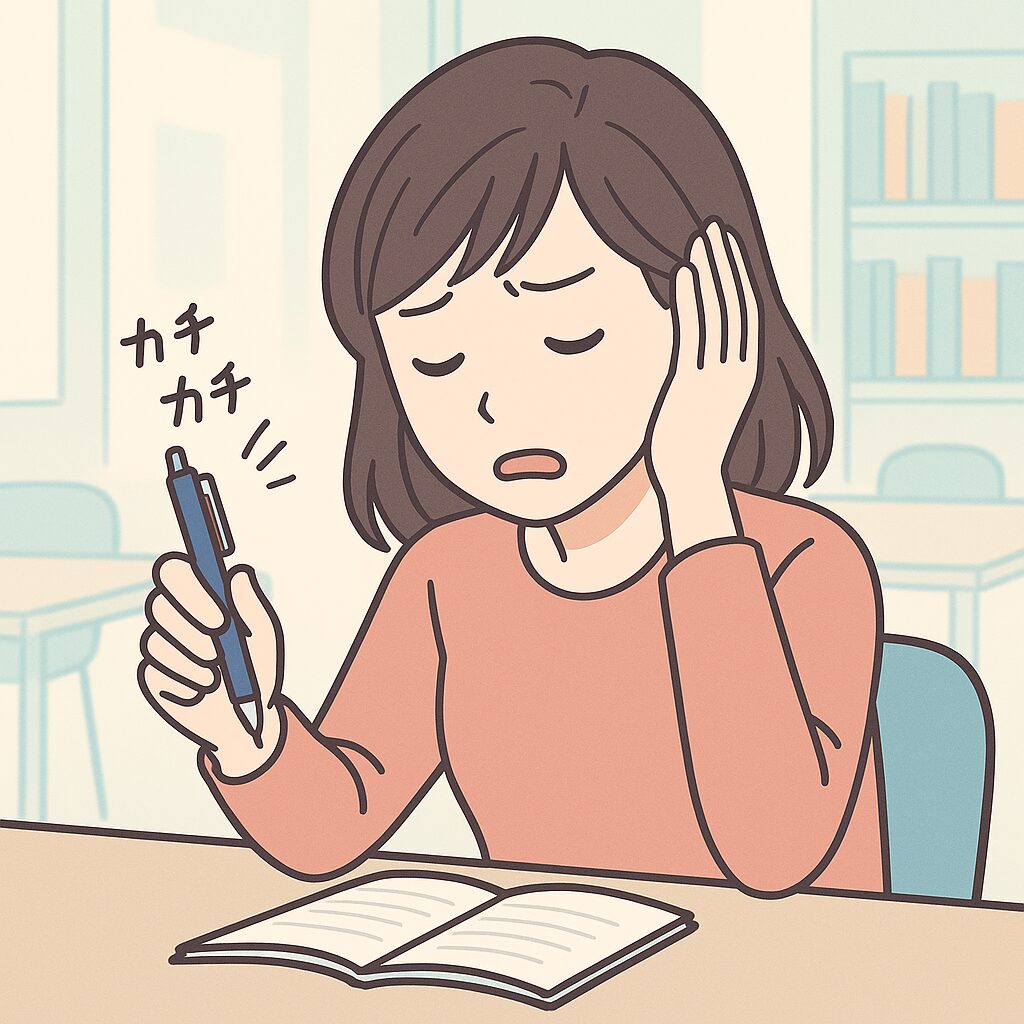 ボールペンのカチカチ音は、出している本人が「無意識」であることが多く、何度も繰り返される点が問題です。特に静かなオフィスや図書館などでは、その繰り返し音が蓄積されて、ストレスやイライラの原因になりやすいのです。